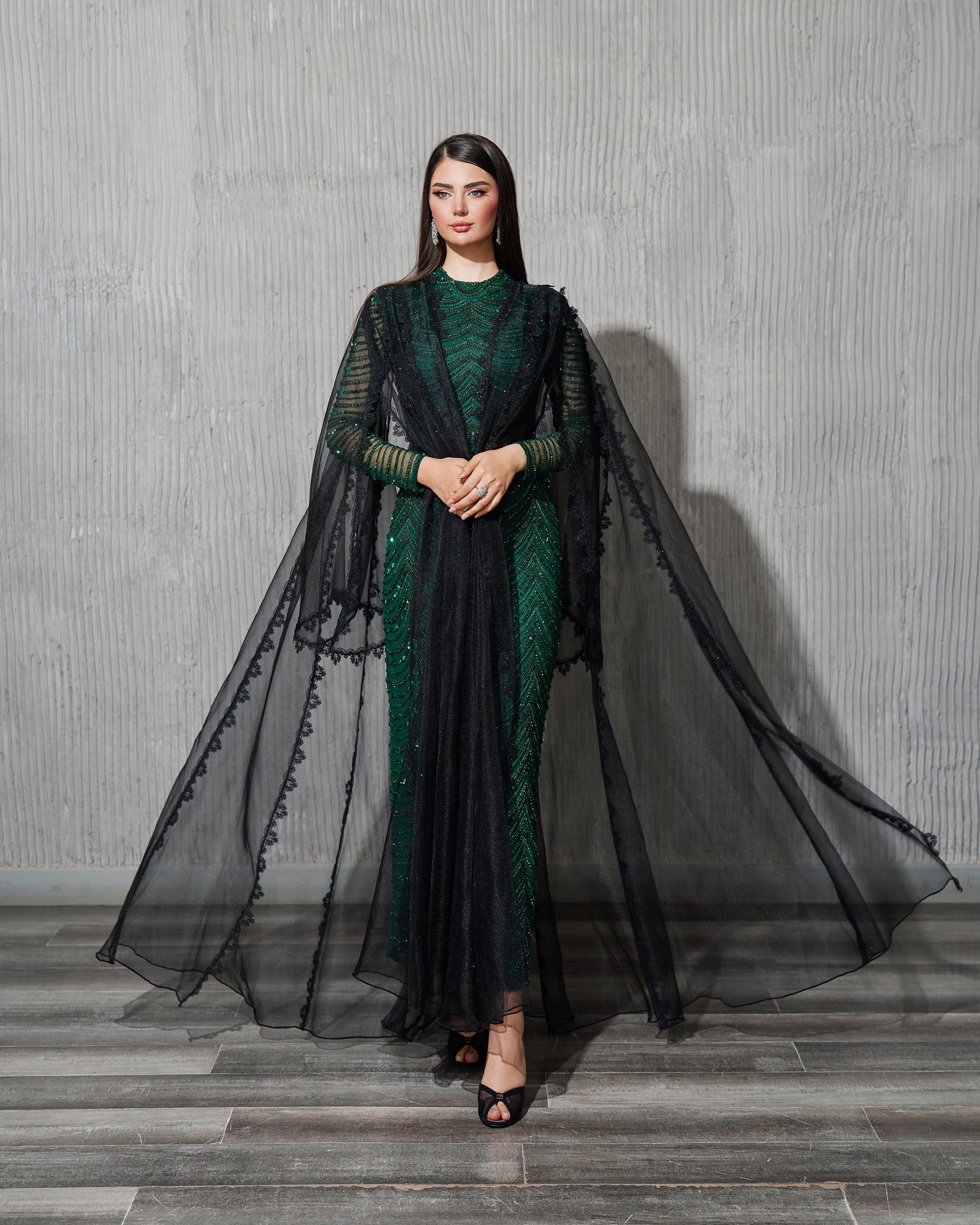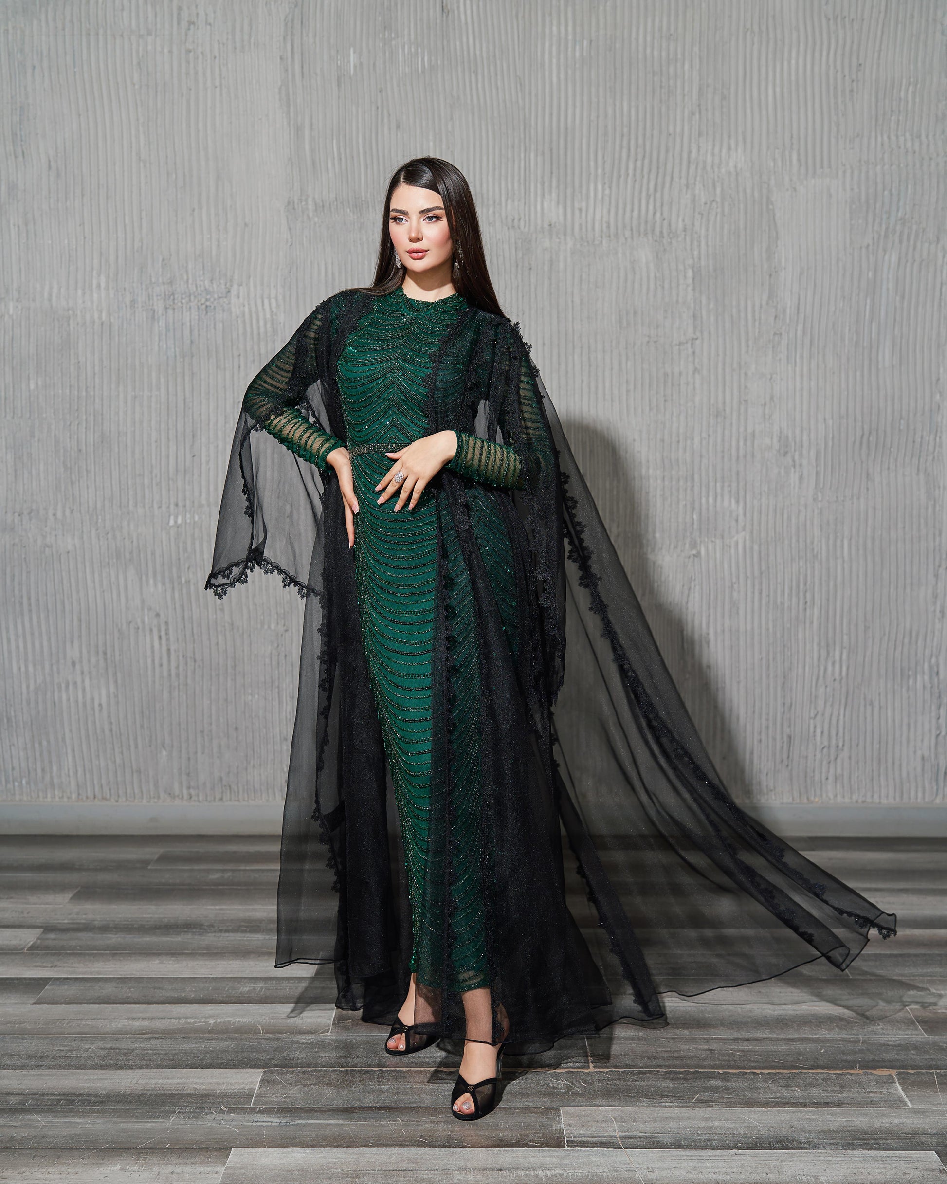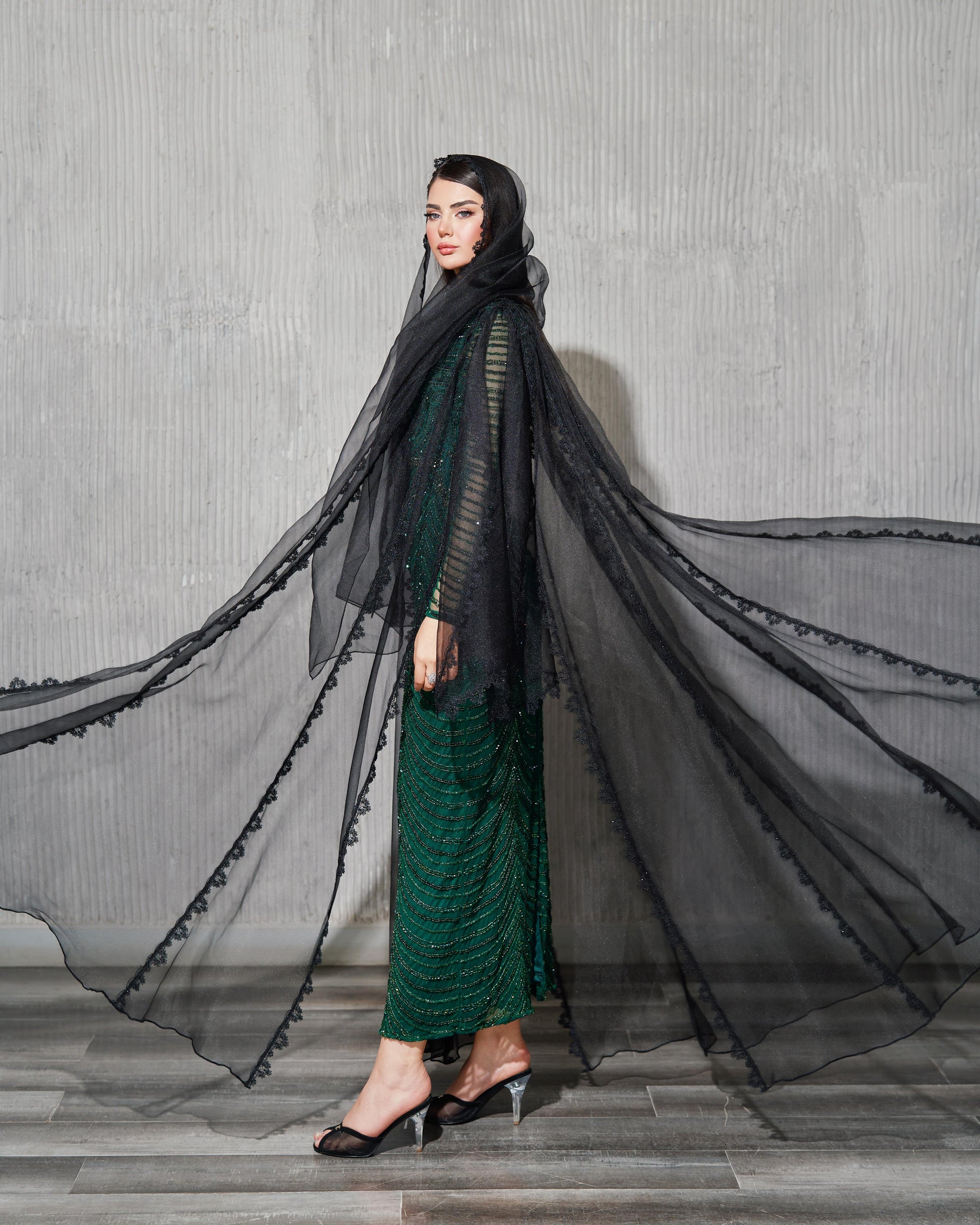 عباية اورغانزا ناعمة و خفيف مع دانتيل و كرستالات