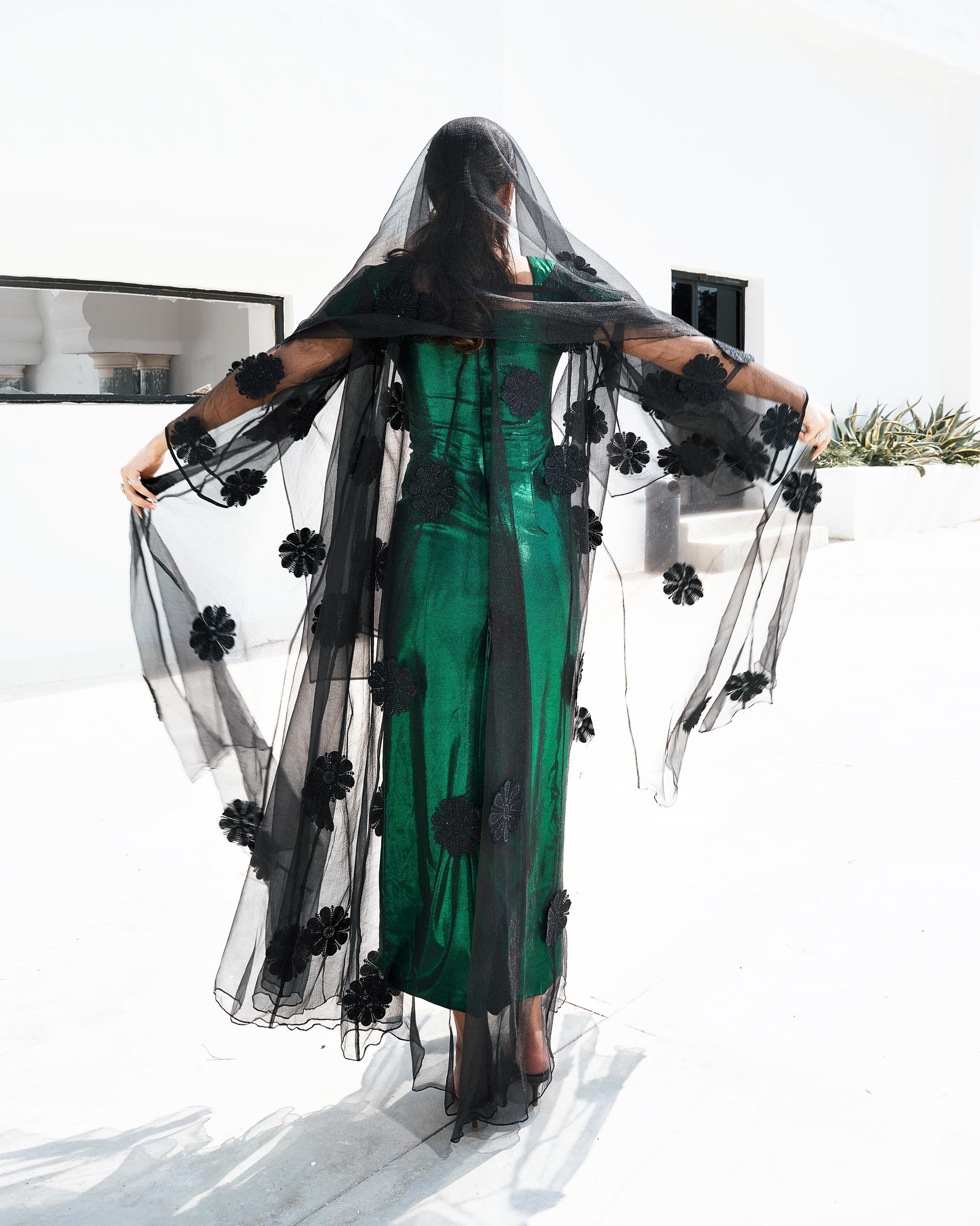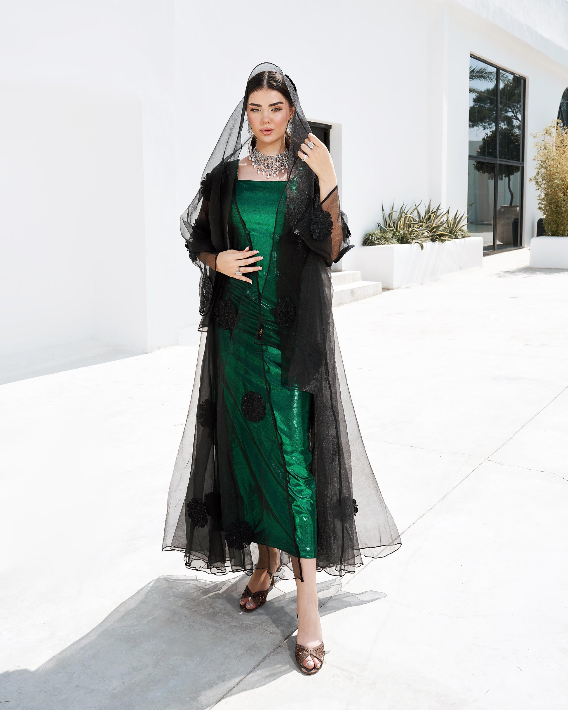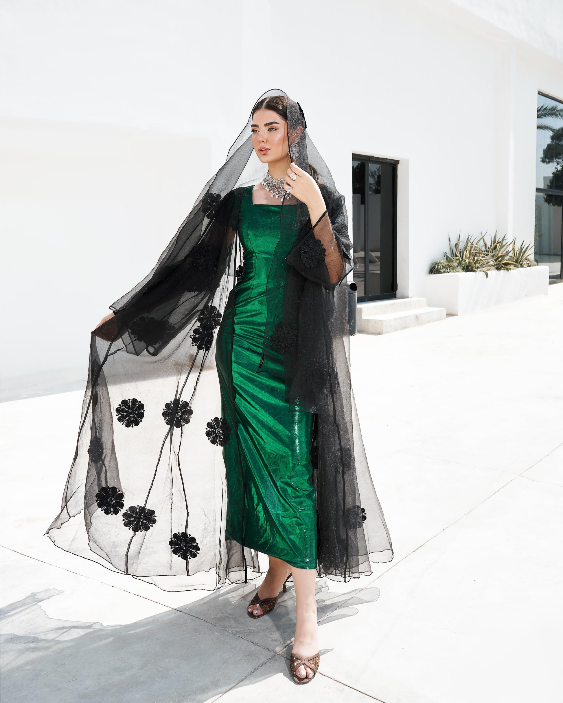 اورغانزا دبل كلوش خفيفة مطرز بورود و كرستالات مع الشيلة