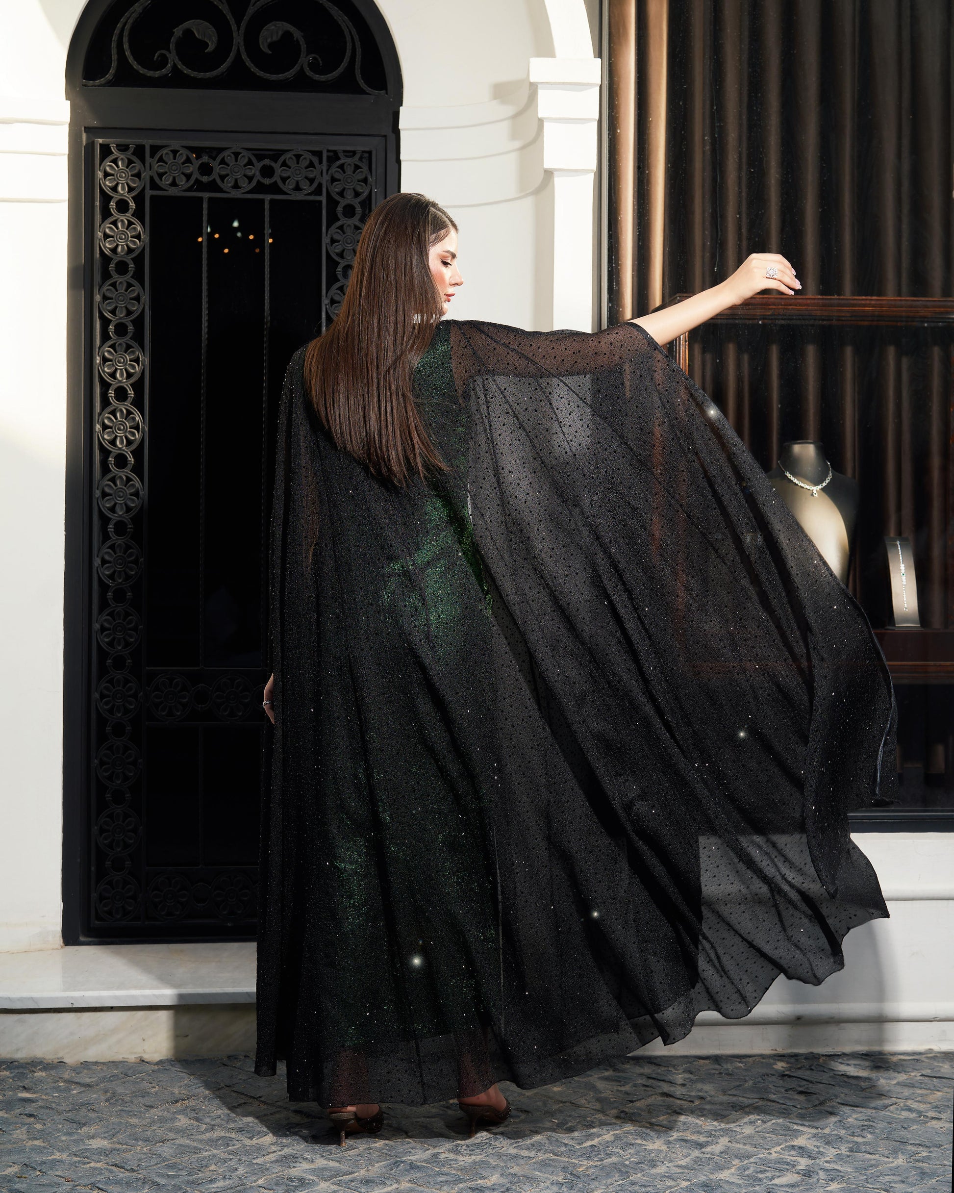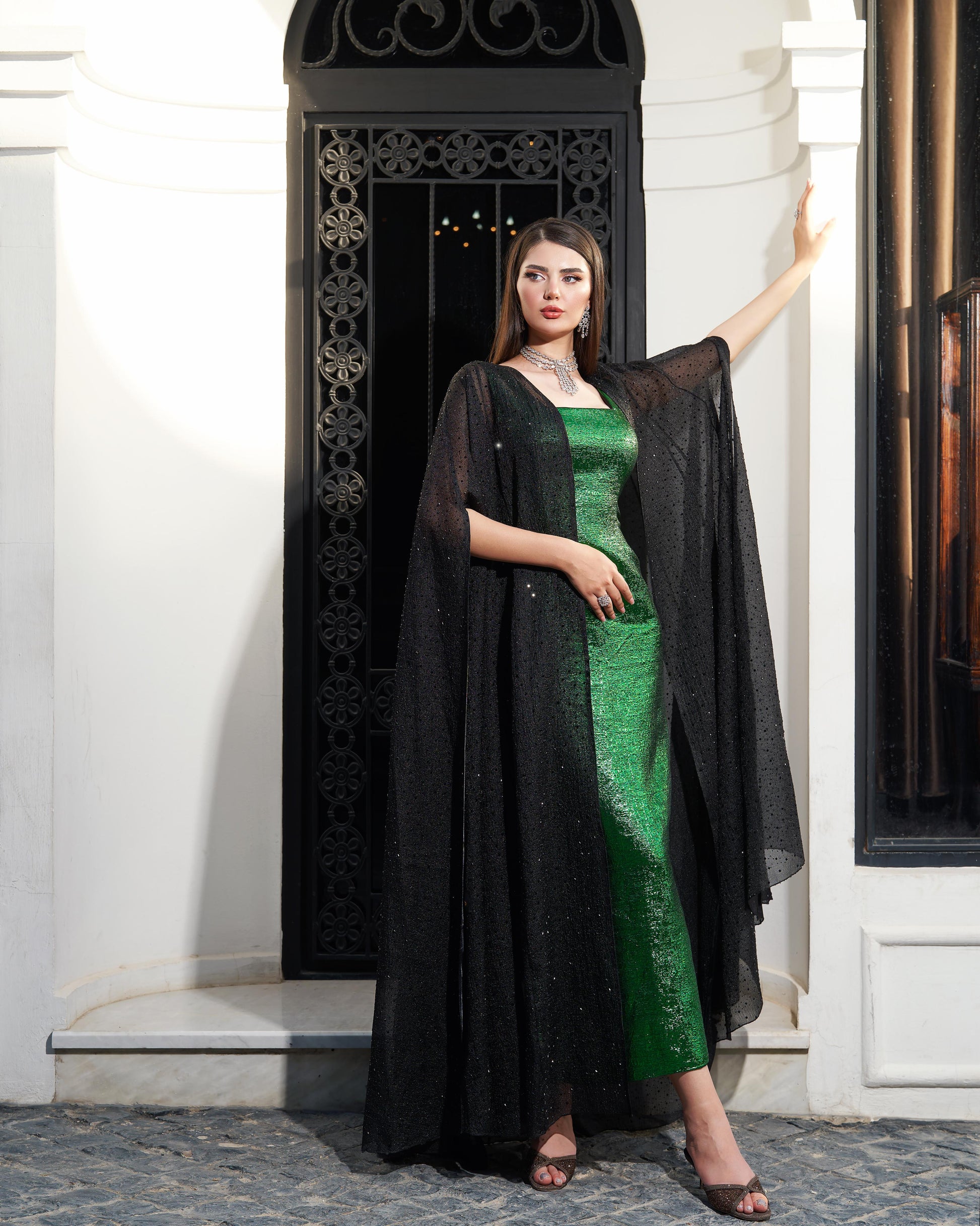 اورغانزا ثقيلة مع كرستالات مربع و فصوص اسود . قصة كيب دبل كلوش